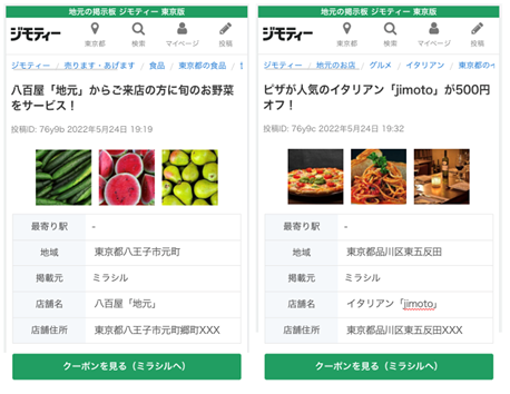 第一生命の生涯設計デザイナーが、地域企業から集めたクーポン情報をジモティーとミラシル(第一生命が運営する情報サイト)に掲載します。地域企業ならではのお得な商品情報や割引クーポンが掲載され、ジモティー、ミラシルを利用する地域住民の方は無料で利用することが可能となります。