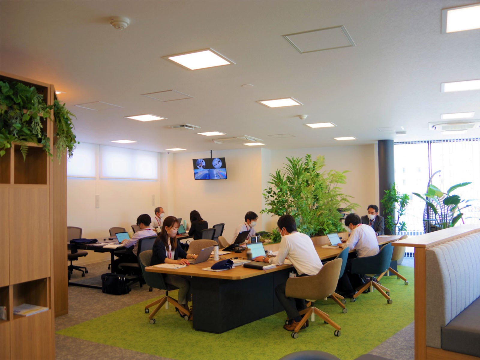新しい事業所への移転にあたり、コロナ禍で変化した働き方にも対応するため、リコージャパンが全社で取り組んでいる「場所にとらわれない働き方」を実践できるオフィス環境づくりを目指し、さまざまなワークスペースを取り入れました。