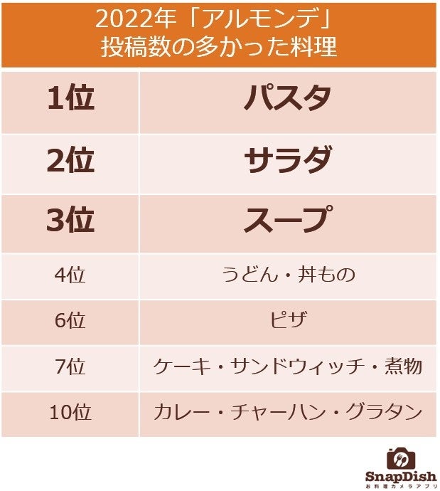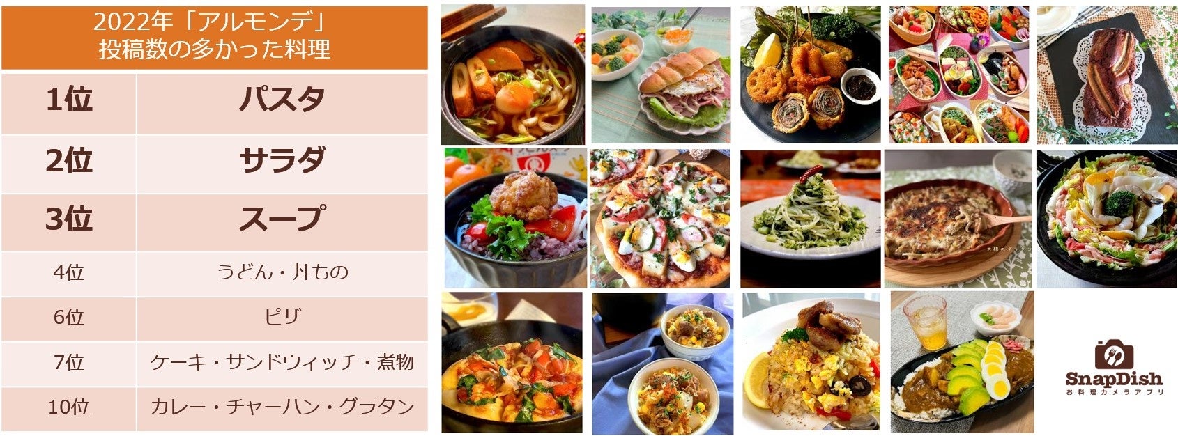 - 2022年のスナップディッシュ「アルモンデ」料理投稿数ランキング
