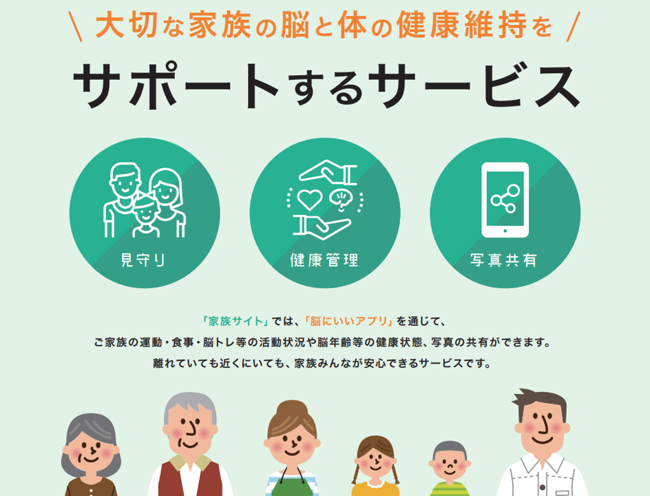 健康アプリ『脳にいいアプリ』を通じてご家族と繋がることができるWebサービスです。