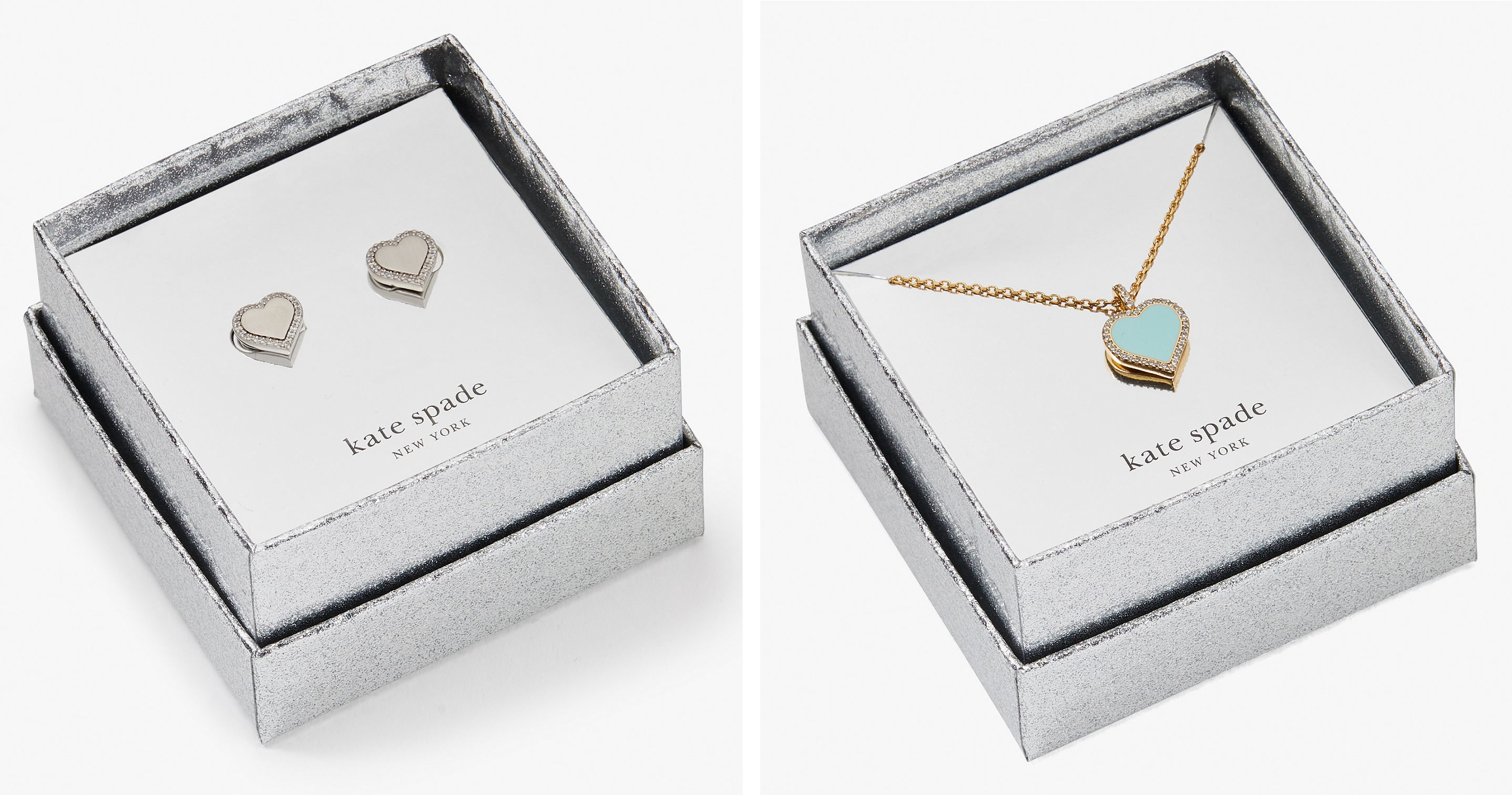ハートシェイプのモチーフに輝くクリスタルをセッティングした、ピアス、 ペンダントの2型から成る定番コレクションに、新色のシルバー、ターコイズ、マルチが登場。ホリデーシーズン限定のスペシャルギフトボックス付き。シルバーボックスの中には”Reuse Me to help protect your precious things (あなたの大切なものを守るためにリユースして)“のメッセージ入り。(写真左から) テイク ハート ピアス ボックス セット ¥14,300, テイク ハート ペンダント ボックス セット ¥16,500