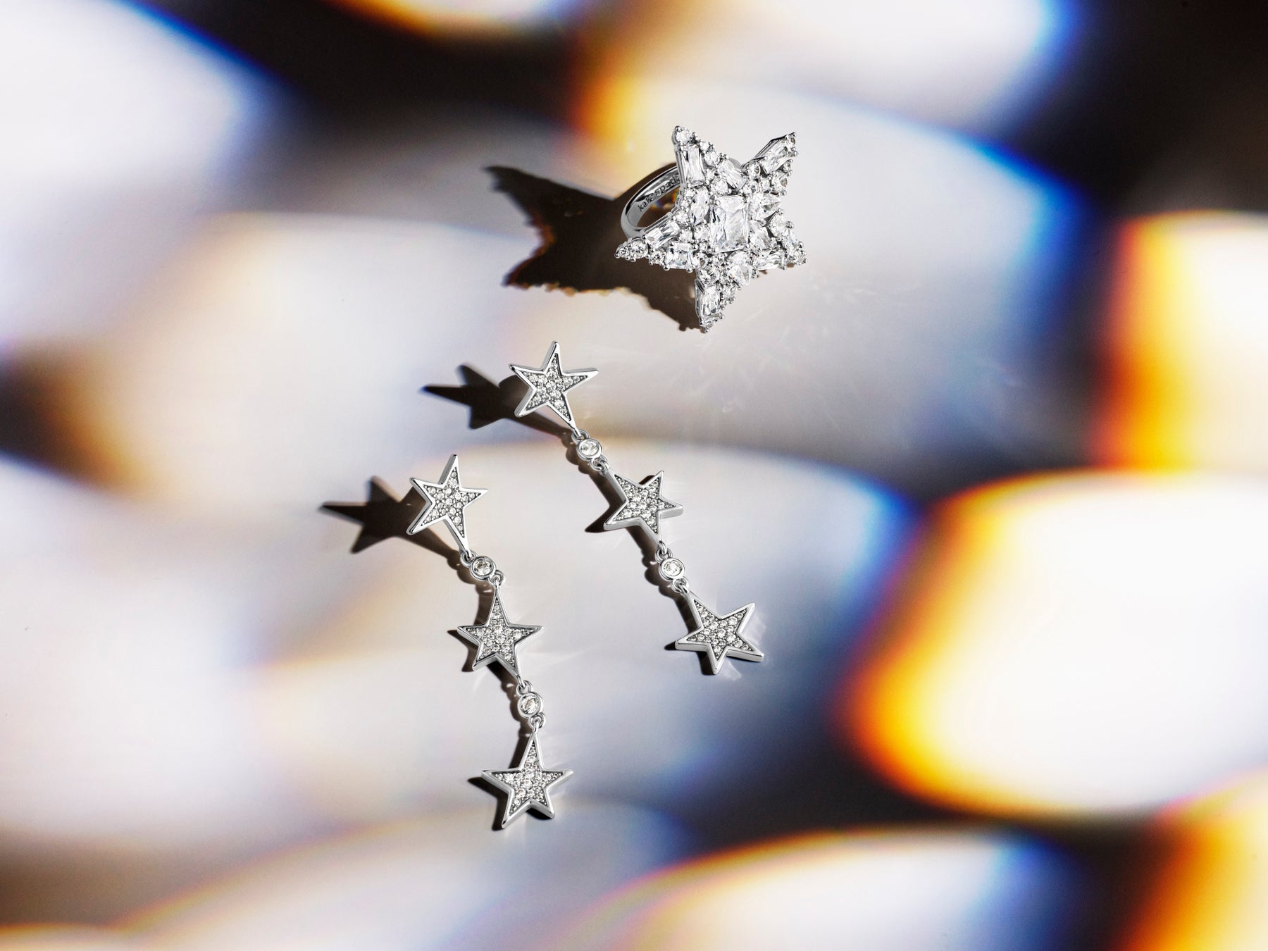 「あなたはスター!」というチアフルなネーミングの、夜空に煌めく星がモチーフの コレクション。様々なサイズのビジューを敷き詰めた華やかなコレクションは、ピアスから、ネックレス、リング、ブレスレットまで、バリエーション豊かに展開されます。(写真左から) ユーアー ア スター リニア ピアス ¥28,600、ユーアー ア スター カクテル リング ¥33,000 ※全て税込み