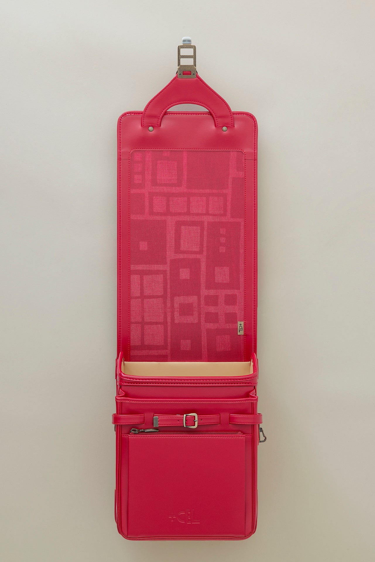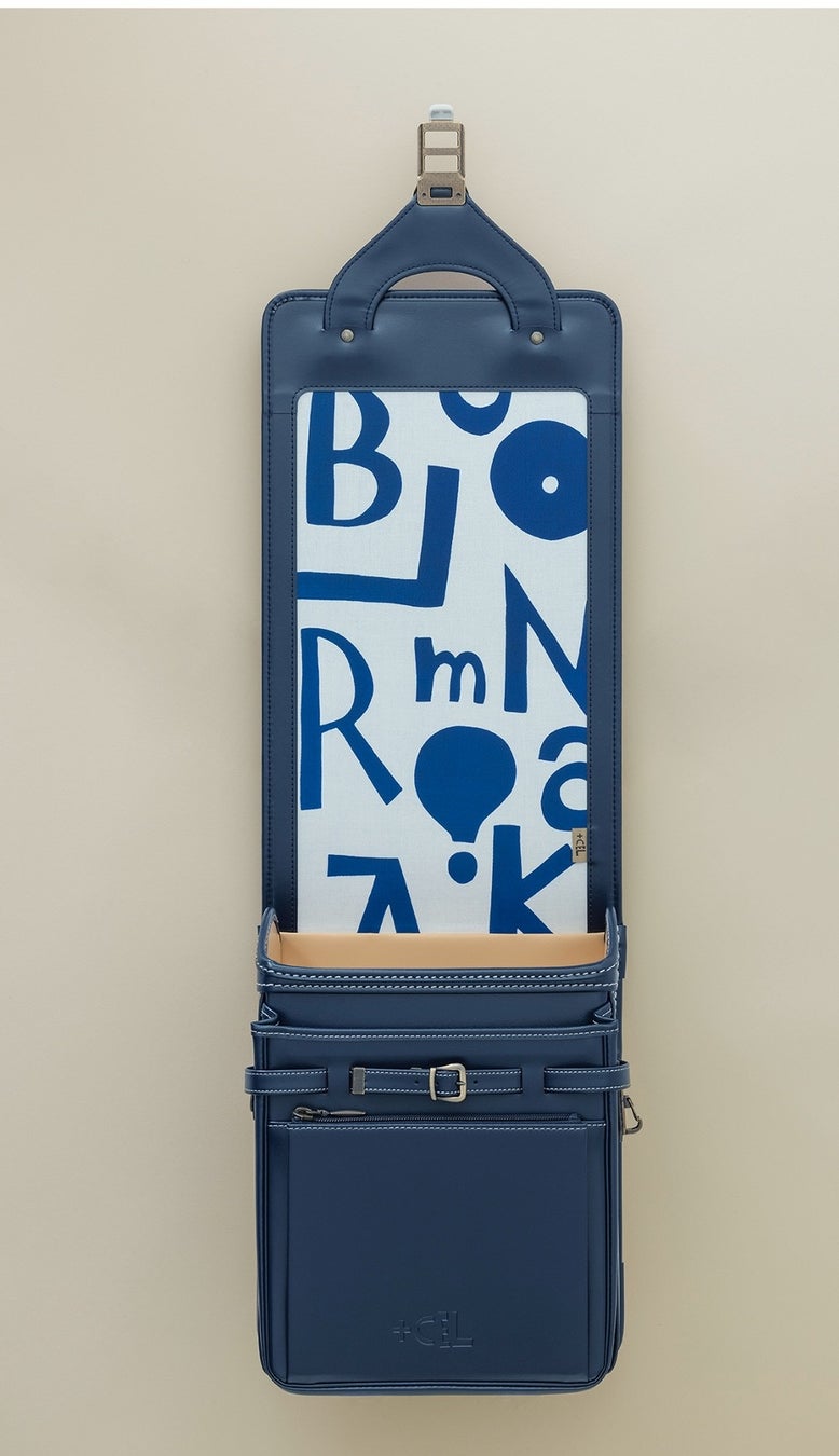 「+CEL」のロゴは染色家でアーティストの柚木沙弥郎さんに、つくっていただきました。日本の伝統敵な染色技法である型染の技法を用いています。ランドセルの蓋である「かぶせ」の裏にも、無地の他、柚木沙弥郎さんの作品をあしらい、毎日の開け閉めの時間を優しく彩ります。百寿を過ぎた柚木さんが、ロゴや「かぶせ」裏の作品に込めたエールは、小さな子どもたちはもちろんのこと、ランドセルを贈る大人たちにも向けられています。