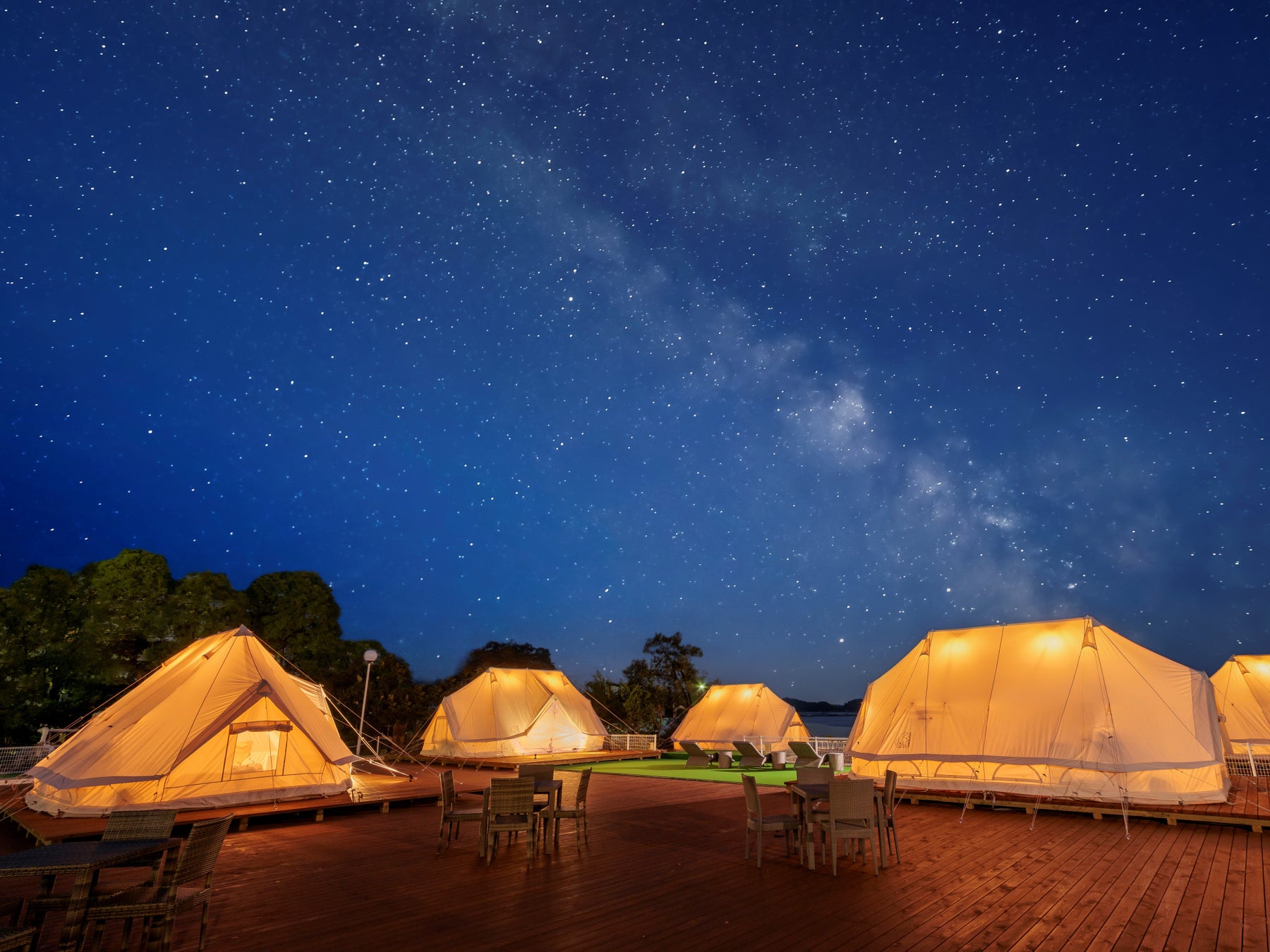 湯快リゾートでは、三重県 鳥羽彩朝楽に屋内グランピングルームを備えておりましたが、この度、お客様のご好評の声にお応えして屋外グランピングを4ホテルに新設いたしました。