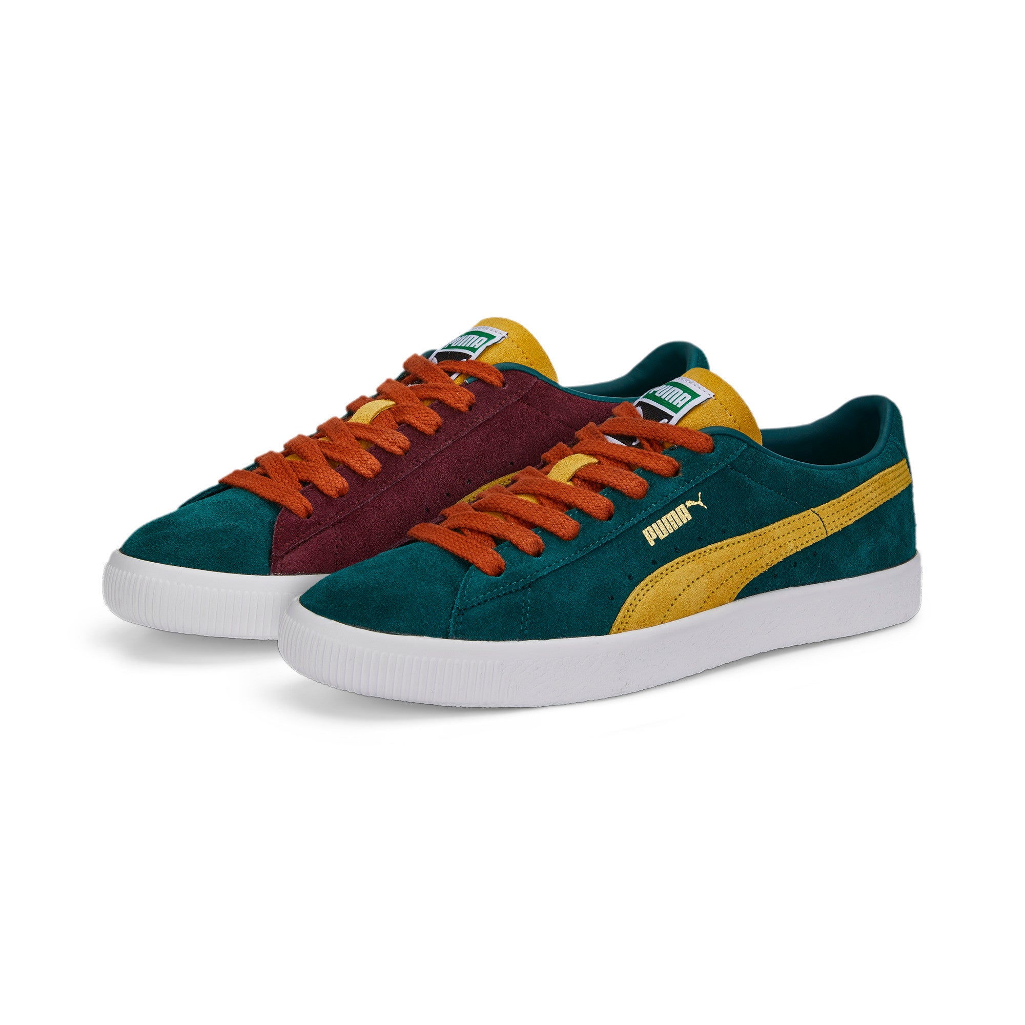 「PUMA SUEDE」は、1968年にトレーニングシューズとして誕生し、80年代には数々の有名アーティストに愛用され、ヒップホップカルチャーやスケートシーンに欠かせないアイテムとして、世界中にその名を広めました。50年以上もの時を経てもなお、あらゆる世代に愛され続けている不変のスタイルです。「SUEDE VTG TEAMS」は、アッパーにフルプレミアムスウェードを採用し、クラシックの中に華やかさを連想させるデザインです。シューズの外側と内側の対照的なカラーブロッキングは、1980から90年代のアメリカのプロバスケットボールチームのチームカラーからインスピレーションを受け、当時のチームのライバル関係を表現しています。