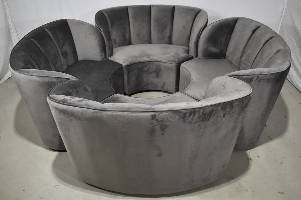 花芯(スツール)は、完全な円を構成するため、花びらの内側も円になるようつくられています。また、モジュールソファの正円のスツールを1つではなく分割式にすることで、モジュールソファとしての可能性が広げられています。