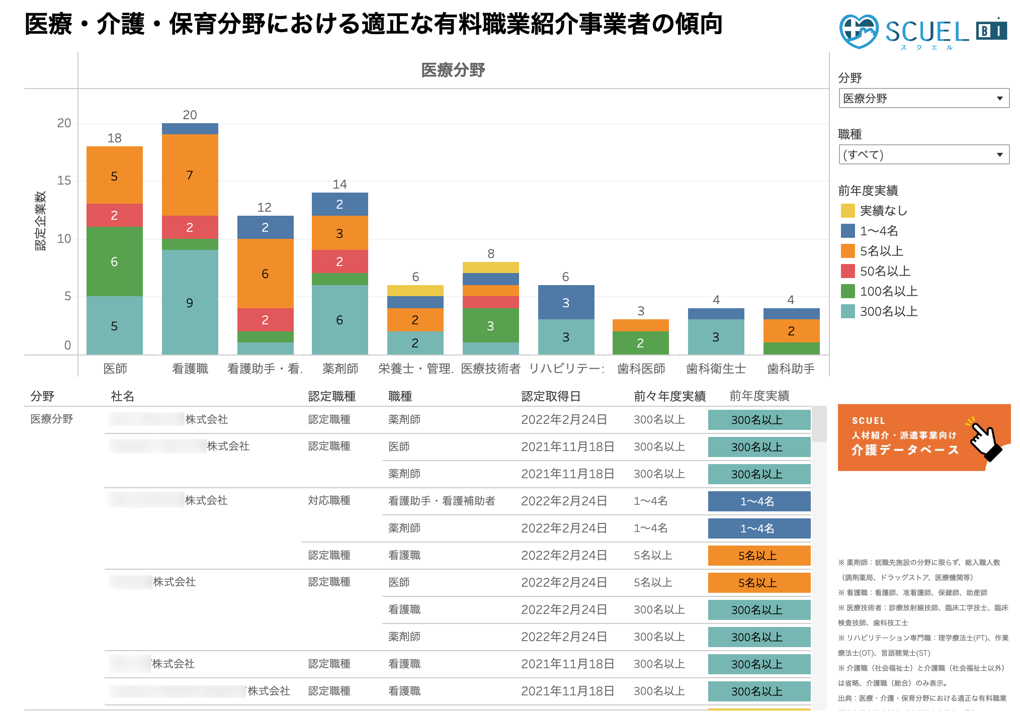 医療・介護・保育分野における「適正な有料職業紹介事業者」は全事業者の約3〜9%。認定事業者49社の情報を調査した結果を医療機関・介護事業者向けに無償公開。