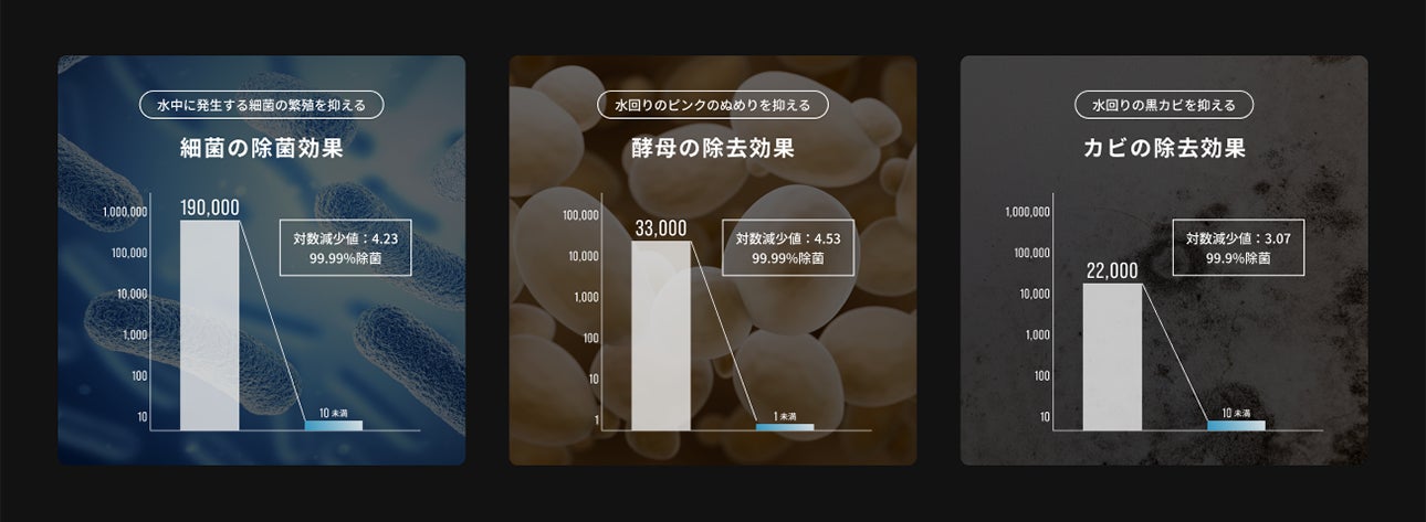 ・自社試験の結果であり、ご使用環境により汚れやぬめりなどが付着している場合はお手入れが必要です。