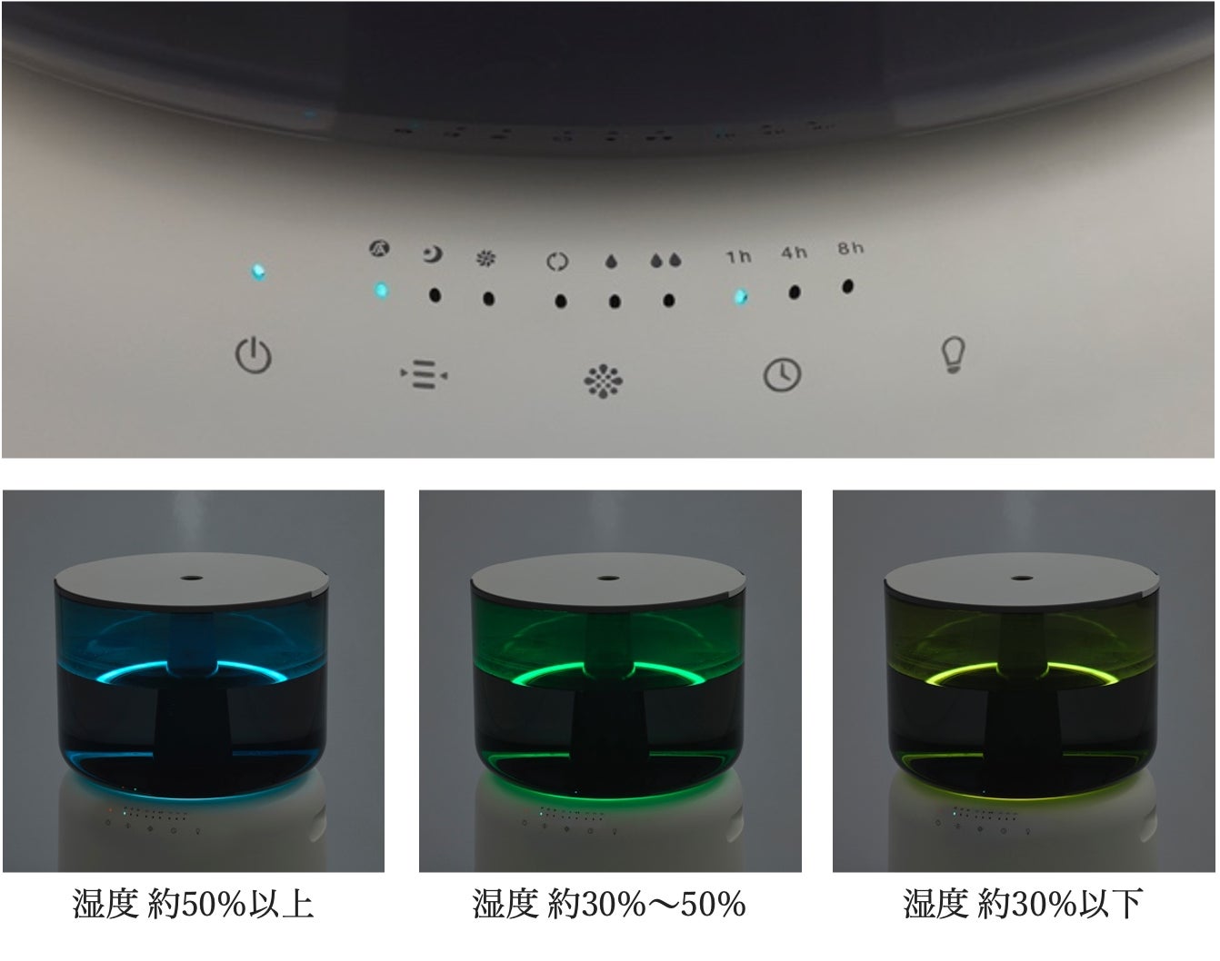 また、湿度に応じてタンク下部LEDの色が切り替わります。