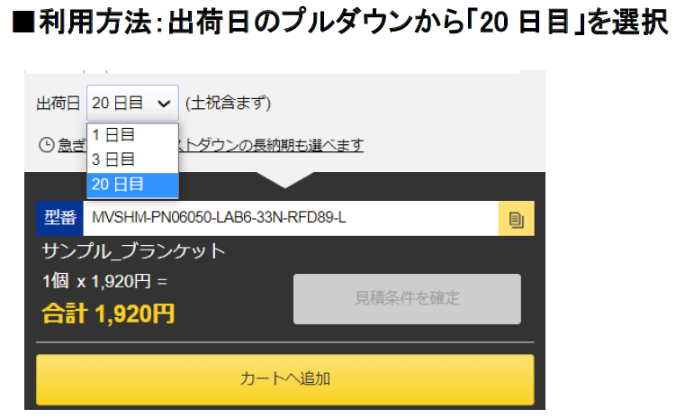 - 利用方法:出荷日のプルダウンから「20日目」を選択