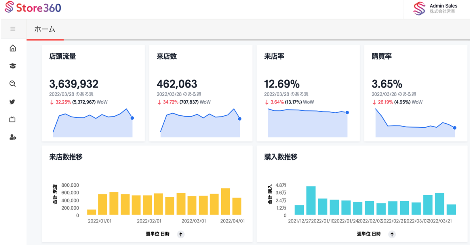 店舗における人流分析ソリューションでは、AIカメラなど高価な機器設置が必要でした。Store360 InsightはOMNICITYが取得する人流データを取り込むことで、来店数・来店率・購買率などの販売促進業務における重要な指標データと、実施施策の関連性をリアルタイムで分析。店舗の販促業務を効果的かつローコストで支援することができるようになりました。