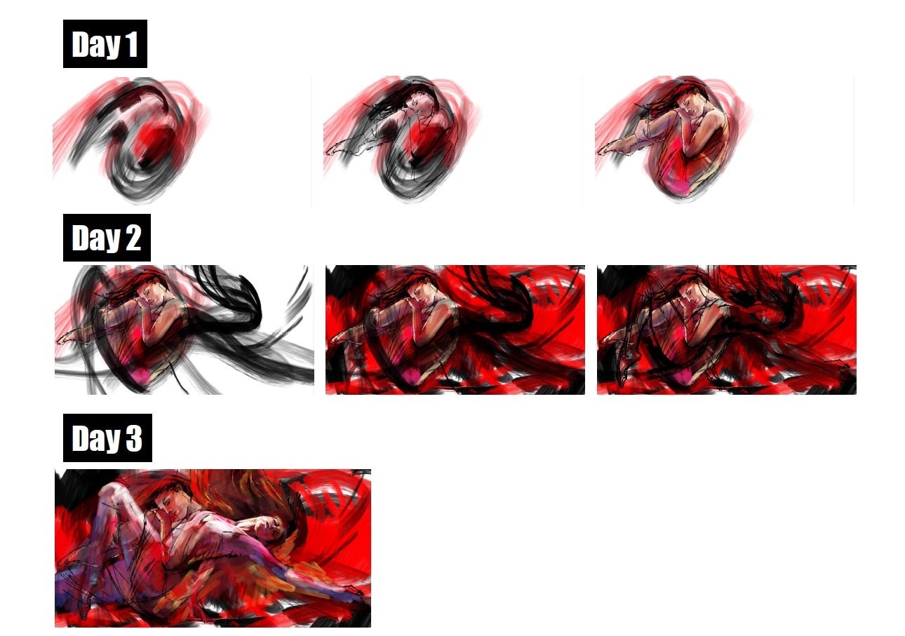 私の身体の動きが絵筆の痕跡となり、この絵を見た人にも私が描いた姿や動き、その自由さが伝われば嬉しいです。