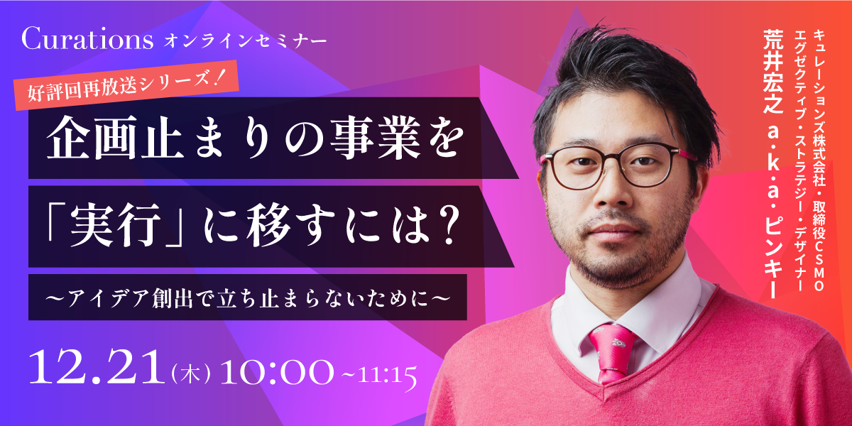 【12月21日(木)10:00~ 無料オンラインセミナー】企画止まりの事業を「実行」に移すには?〜アイデア創出で立ち止まらないために〜(好評回再放送シリーズ!)