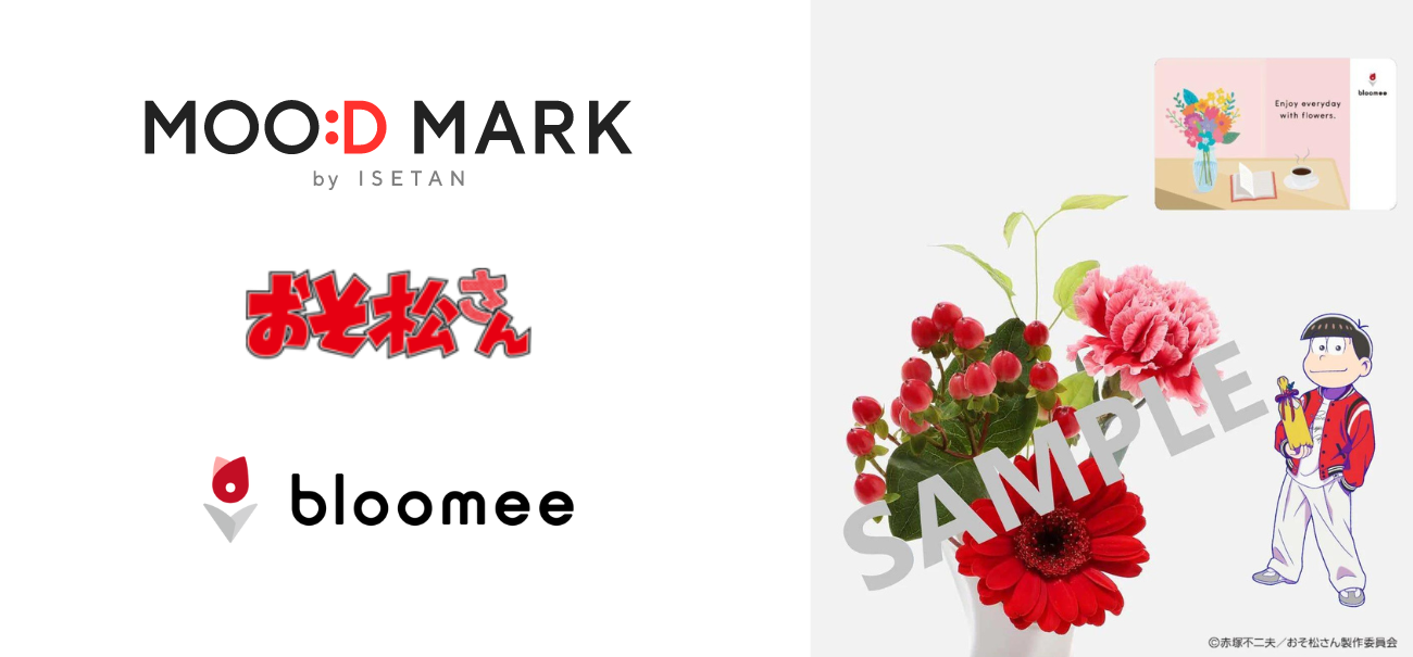 おそ松さんに登場する6つ子「おそ松」、「カラ松」、「チョロ松」、「一松」、「十四松」、「トド松」それぞれからフラワーブーケが届く限定企画で、商品は「MOO:D MARK by ISETAN」が販売します。