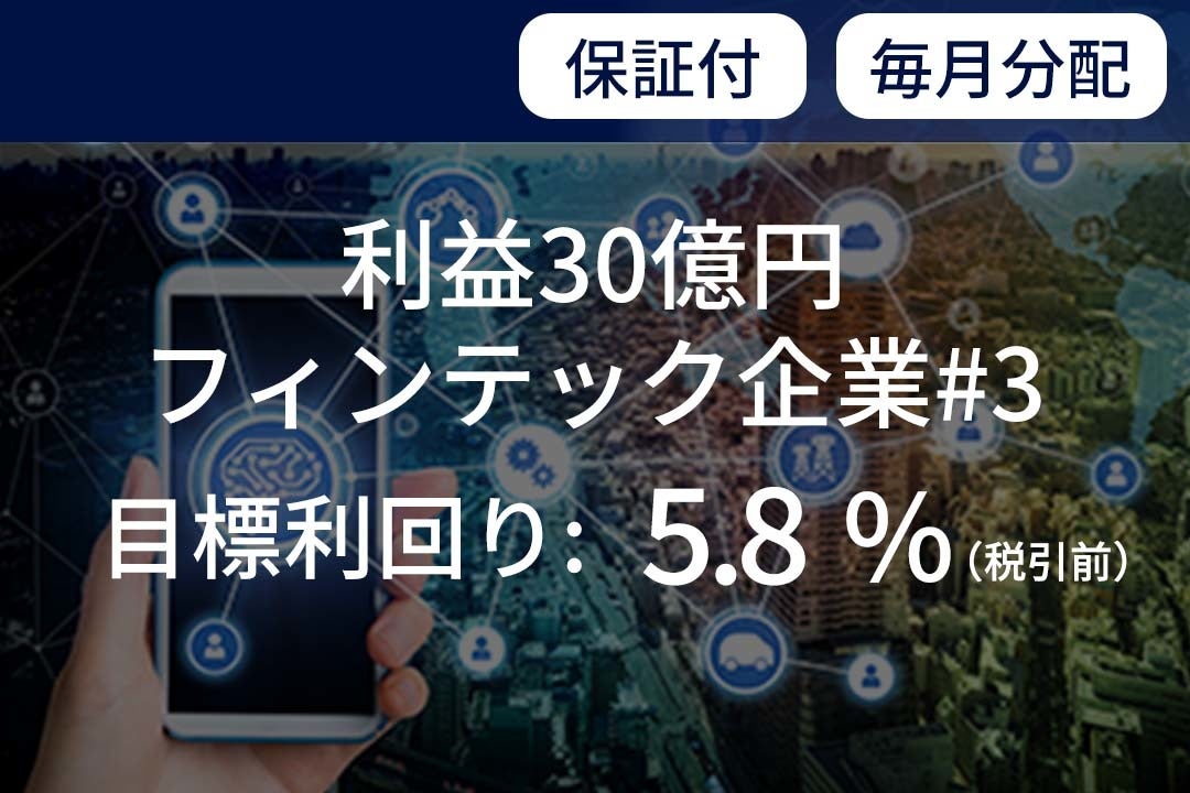 資産運用プラットフォーム「SAMURAI FUND」、『【保証付×毎月分配】利益30億円フィンテック企業#3』を公開