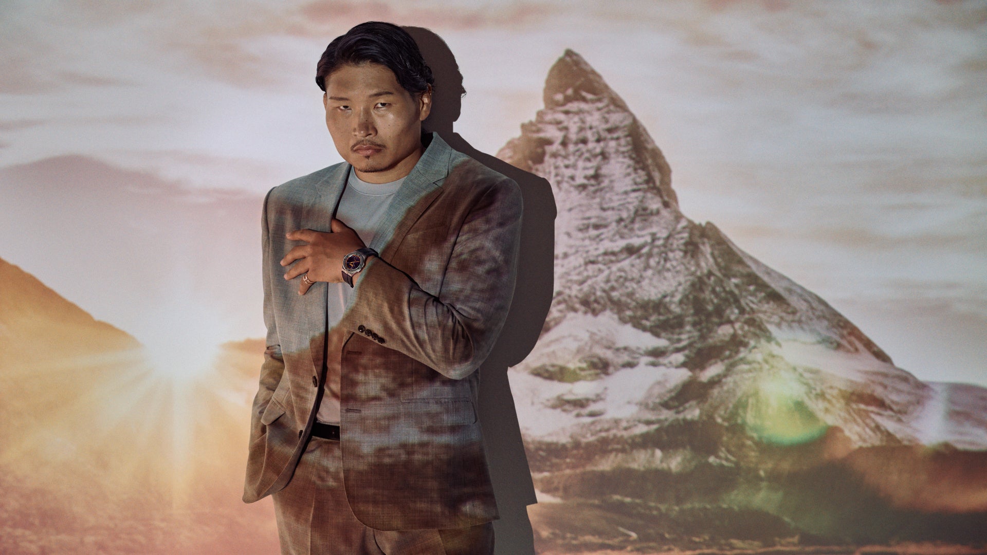 今回のビジュアルのテーマは、「アルプスの大自然との融合」。アルプスに生息するイーグルの圧倒的な力強さにインスピレーションを得たコレクション「アルパイン イーグル」の新作2モデルを身に着けた稲垣さんが、マッターホルンを背に登場します。星空や夜明けといった移ろいゆく空の幻想的な風景の中で、コレクションの力強さとエレガンスを体現。雄大なアルプスの自然の中で、力強くも静謐な存在感を放つビジュアルが完成しました。
