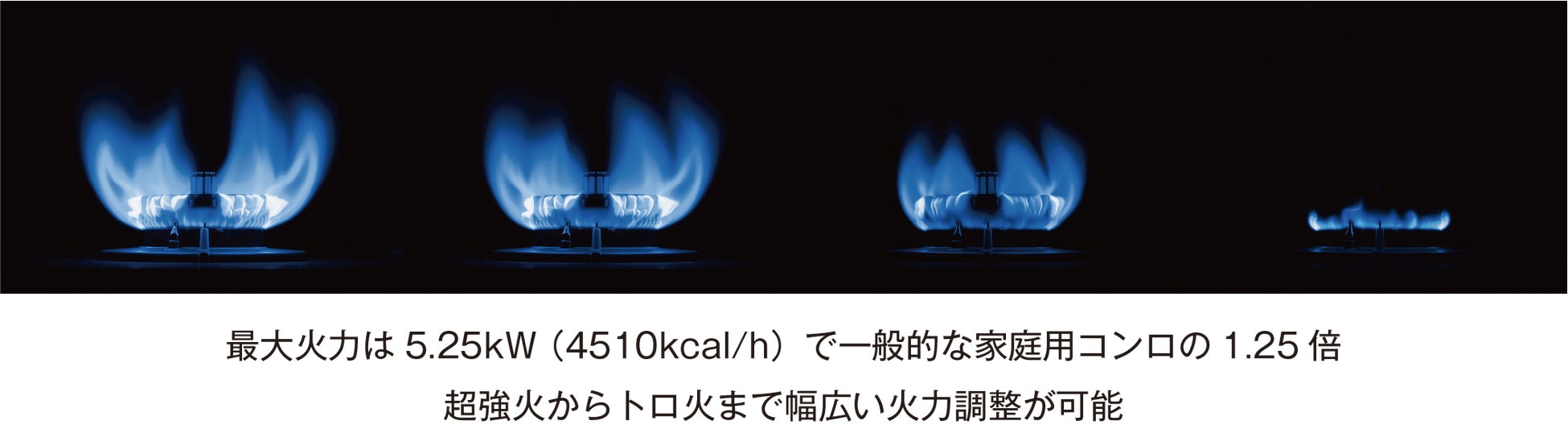 新型2段式大火力バーナーを搭載、超強火力を実現しながら点火直後の安全性と調理時の熱分布が向上