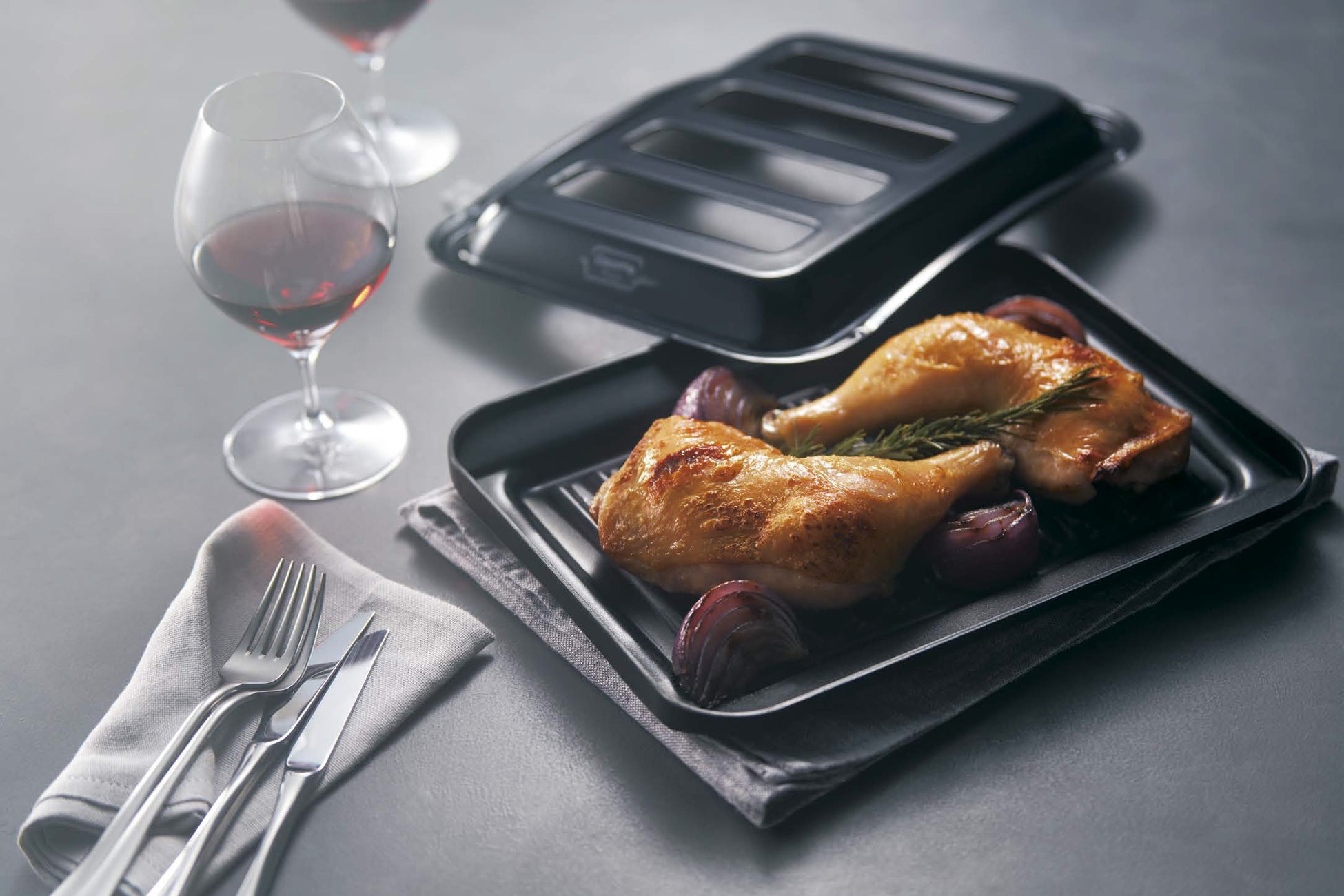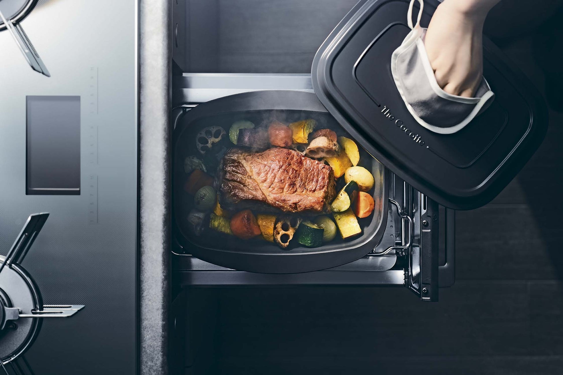 ザ・ココットはコンロ上とグリルで使える万能鍋です。食材本来のおいしさを丁寧に引き出すグリルのオーブン調理は、ザ・ココットだからできる味わいです。無水調理や蒸し調理、お惣菜パンや冷凍パンを温め直すリベイクにも対応しています。