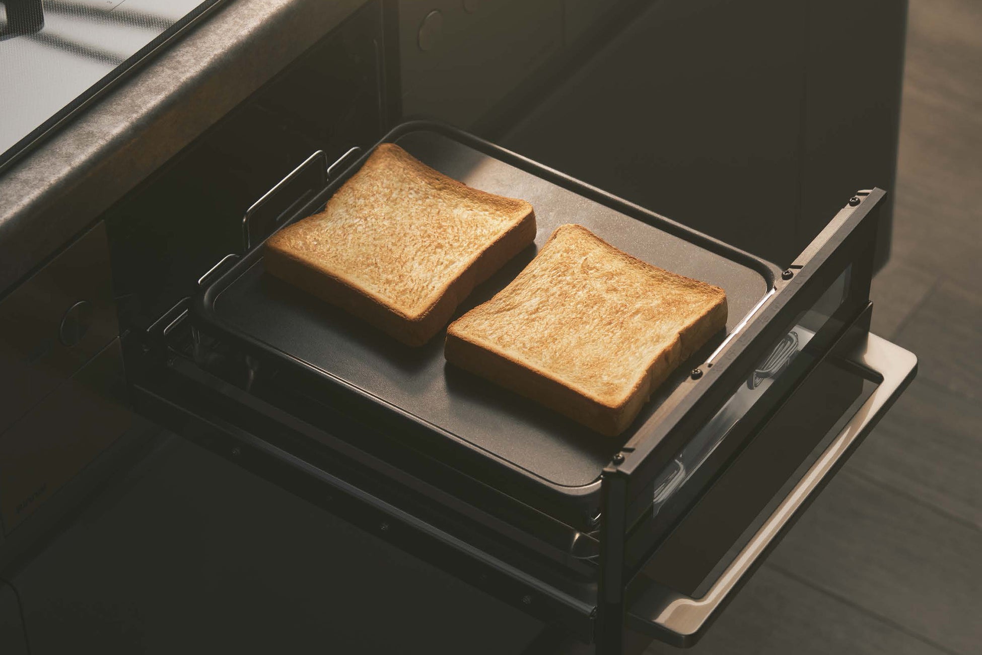 トースト・ピザプレートはいつものトーストとピザをグリルでおいしく焼き上げる調理器具です。トーストの場合、プレートの接地面が平らなので水分が逃げにくく、ふわっとした食感と均一で美しい焼き上がりを楽しめます。プレートにはフッ素コートを施しているため、垂れて焦げてしまったチーズもスポンジでサッと落とせます。