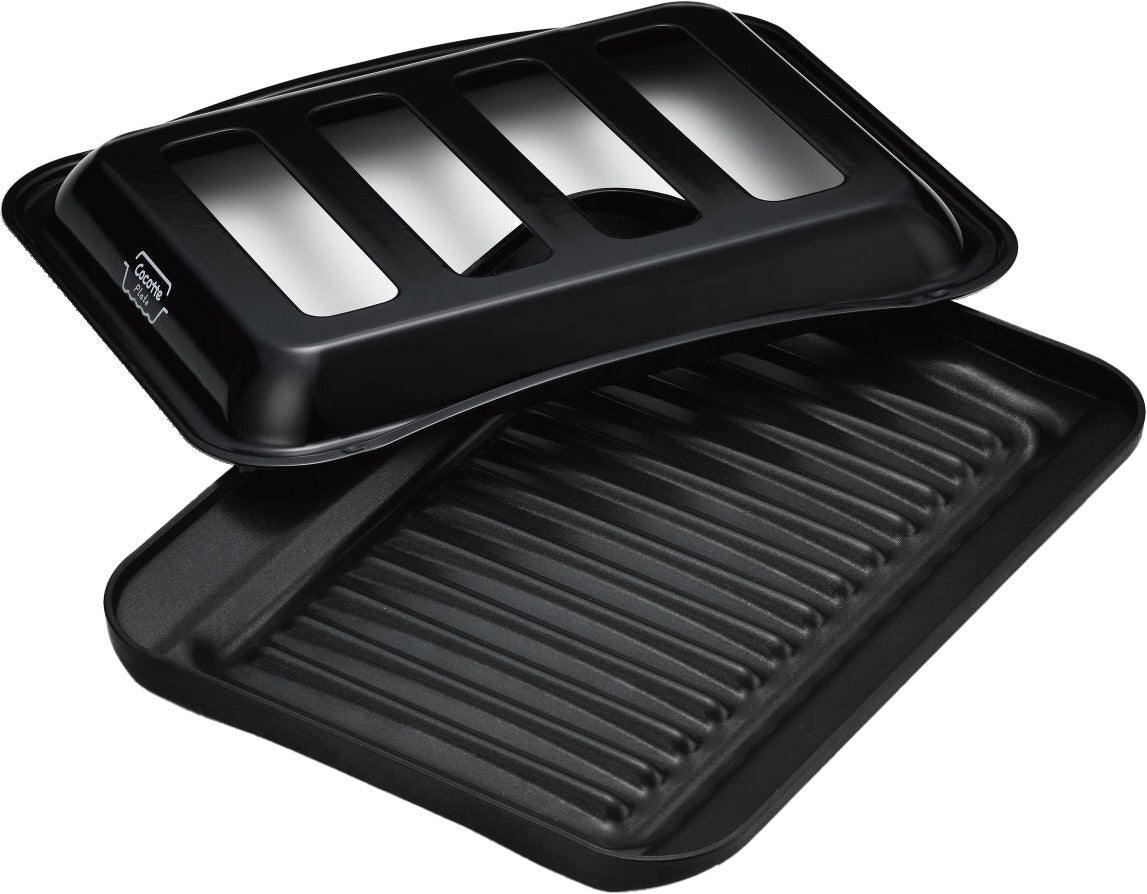 ココットプレートは直火調理を気軽に楽しめるグリル専用の調理器具です。食材の余分な油が波型プレートの溝に流れるため、料理がヘルシーに仕上がります。また、庫内に飛び散る油は高温のバーナーで焼き切るため、グリルが汚れず調理後のお手入れが楽です。