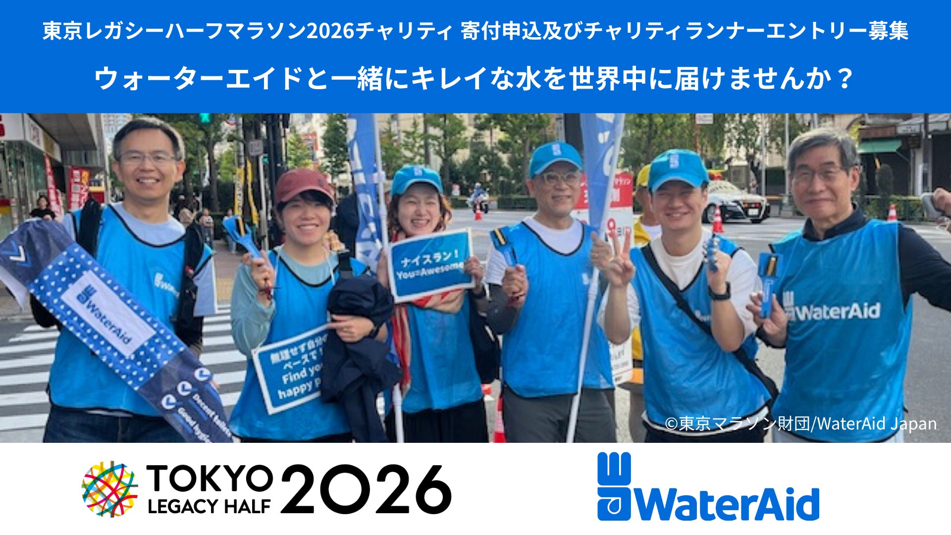 4月15日(水)11:00より寄付金及びチャリティランナーの申込を開始し、東京レガシーハーフマラソン2026チャリティへの参加を通して、ウォーターエイドとともに世界の水・衛生問題の解決を目指してくださる方を募集します。
