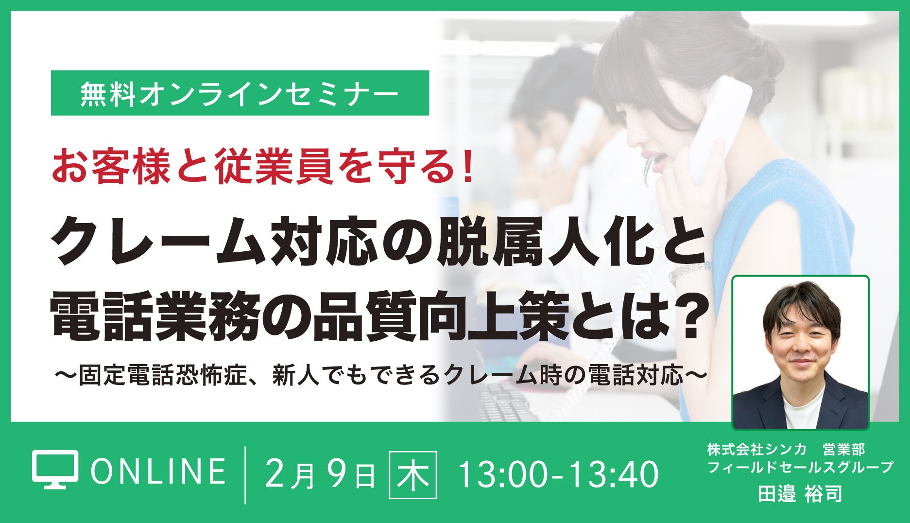 【無料オンラインセミナー】固定電話恐怖症、新人でもできるクレーム時の電話対応を伝授!お客様と従業員を守る「クレーム対応の脱属人化と電話業務の品質向上策とは?」開催