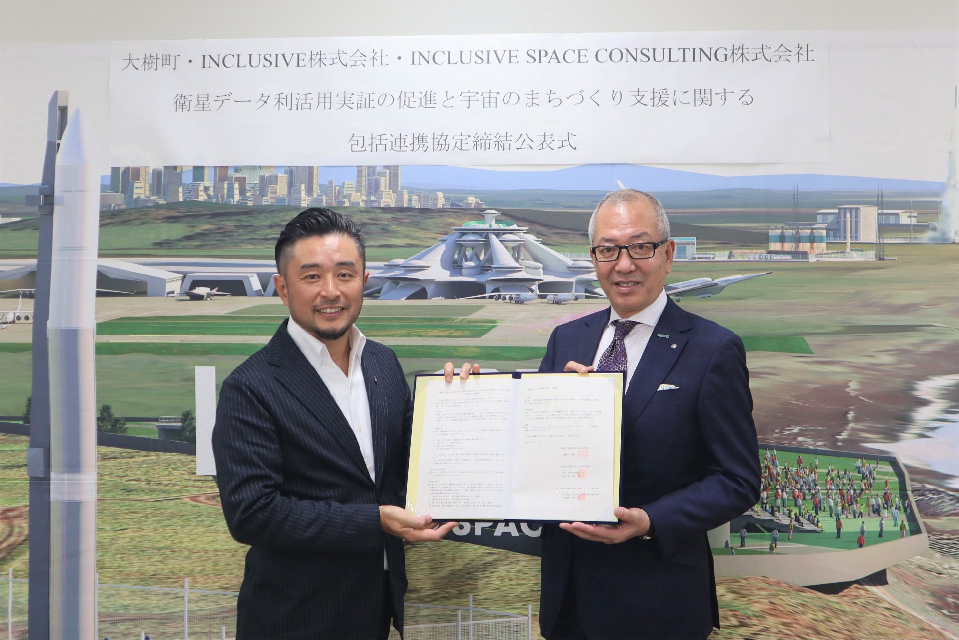 INCLUSIVE株式会社(本社:東京都港区、代表取締役社長:藤田誠 以下「INCLUSIVE」)と、その子会社であるINCLUSIVE SPACE CONSULTING株式会社(本社:北海道札幌市、代表取締役社長:藤田誠、以下「ISC」)は、衛星データを活用した地域課題の解決や「宇宙のまちづくり」の推進などを目的に、北海道大樹町(北海道広尾郡大樹町、町長:酒森正人、以下「大樹町」)と2022年10月25日に包括連携協定を締結したことをお知らせいたします。