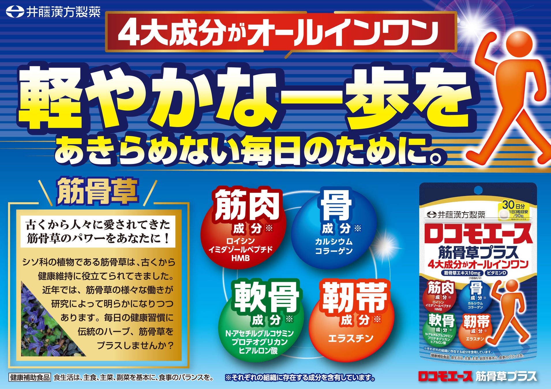 健康食品をはじめ医薬品、医薬部外品などを製造・販売する井藤漢方製薬株式会社(本社:大阪府東大阪市、代表取締役社長:井藤竜生)は、注目の植物素材『筋骨草』に厳選された4大成分をプラスした【ロコモエース筋骨草プラス】を、2025年5月26日(月)より新発売いたします。