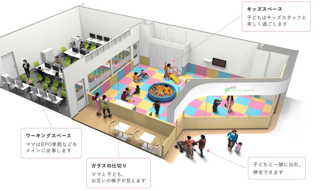 ~託児付オフィスにより、保育も仕事も同時に叶う、ママが子どもと同じ空間で働く環境を実現。女性の多様な働き方と就労機会の拡大に寄与~