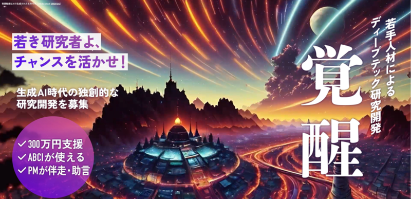 「覚醒プロジェクト」は、若手人材が産業技術総合研究所の保有する先端的研究設備などを活用することで、ディープテック分野における独創的かつ斬新な研究開発を推進し、社会課題解決にチャレンジする事業です。
