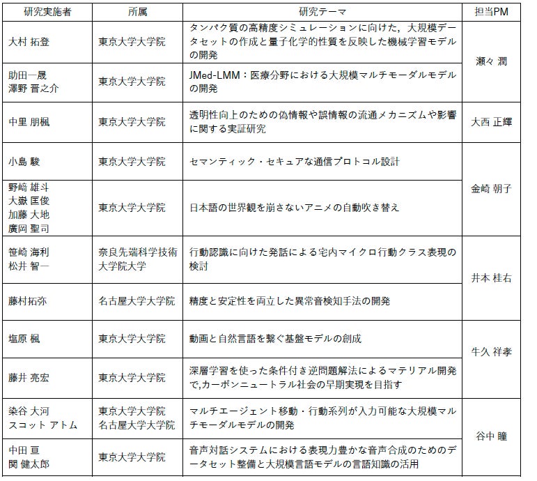 AI技術やバイオインフォマティクスの活用で社会課題解決に挑む、大学院生を中心とした11件の研究テーマを採択 伴走支援を開始