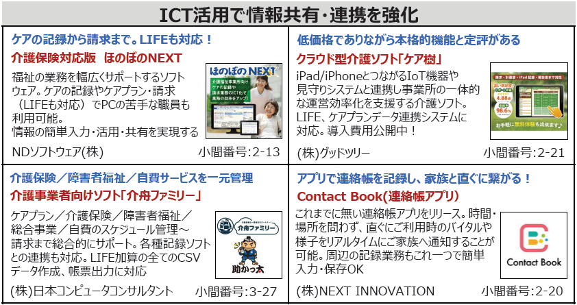 このほかにも、介護現場・介護施設の課題解決を⽀援する多数の企業・商品・サービスが出展︕