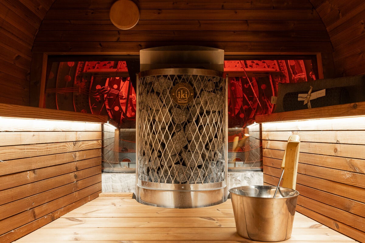 かつて10,000リットルのウイスキー樽として使用されていたこのサウナは、リラクゼーションに新たな趣を加えます。最大7名が利用できる円形の空間には、パッラ社製の薪ストーブが設置され、温かく包み込むような雰囲気の中で会話を弾ませ、特別なひとときを共有することができます。木材に染み込んでいたウイスキーの香りはほのかに消えつつありますが、そのスピリットは今もなお息づいています。