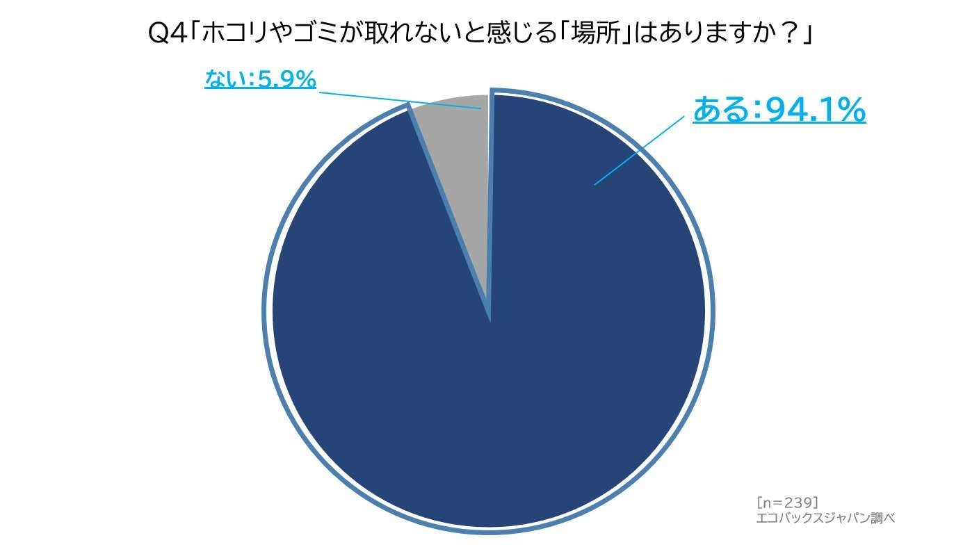 全体の94.1%はホコリやゴミがとれていない場所があると回答。