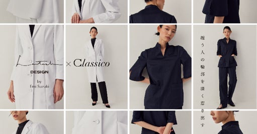 クラシコは創業以来メディカルユニフォームの常識を変えるべく、医療従事者の働くモチベーションを高めるような機能性とデザイン性を備えた“新しい白衣”を生み出してきました。日頃より過酷な現場で活躍する医療従事者へユニフォームを通じて力になりたいという思いに鈴木さんの想いもあり、今回のコラボレーションが実現しました。着るだけでモチベーションが上がる「心のお守りのような存在」になるようにデザインいただきました。