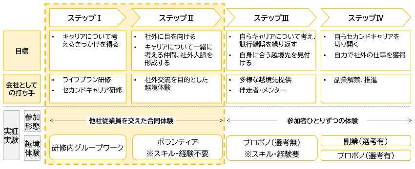 こうした状況を踏まえ、今回の実証実験では座学研修に越境体験を組み合わせ、新たな研修のあり方によるキャリア拡張の可能性を検証していきます。