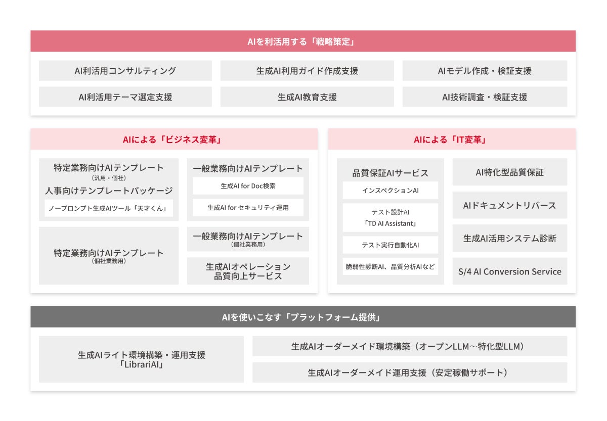 約半年間で独自生成AIツールの社内活用率を3倍以上の約80%へと成長させた実績に基づき、体系的なAI活用施策をパッケージで提供