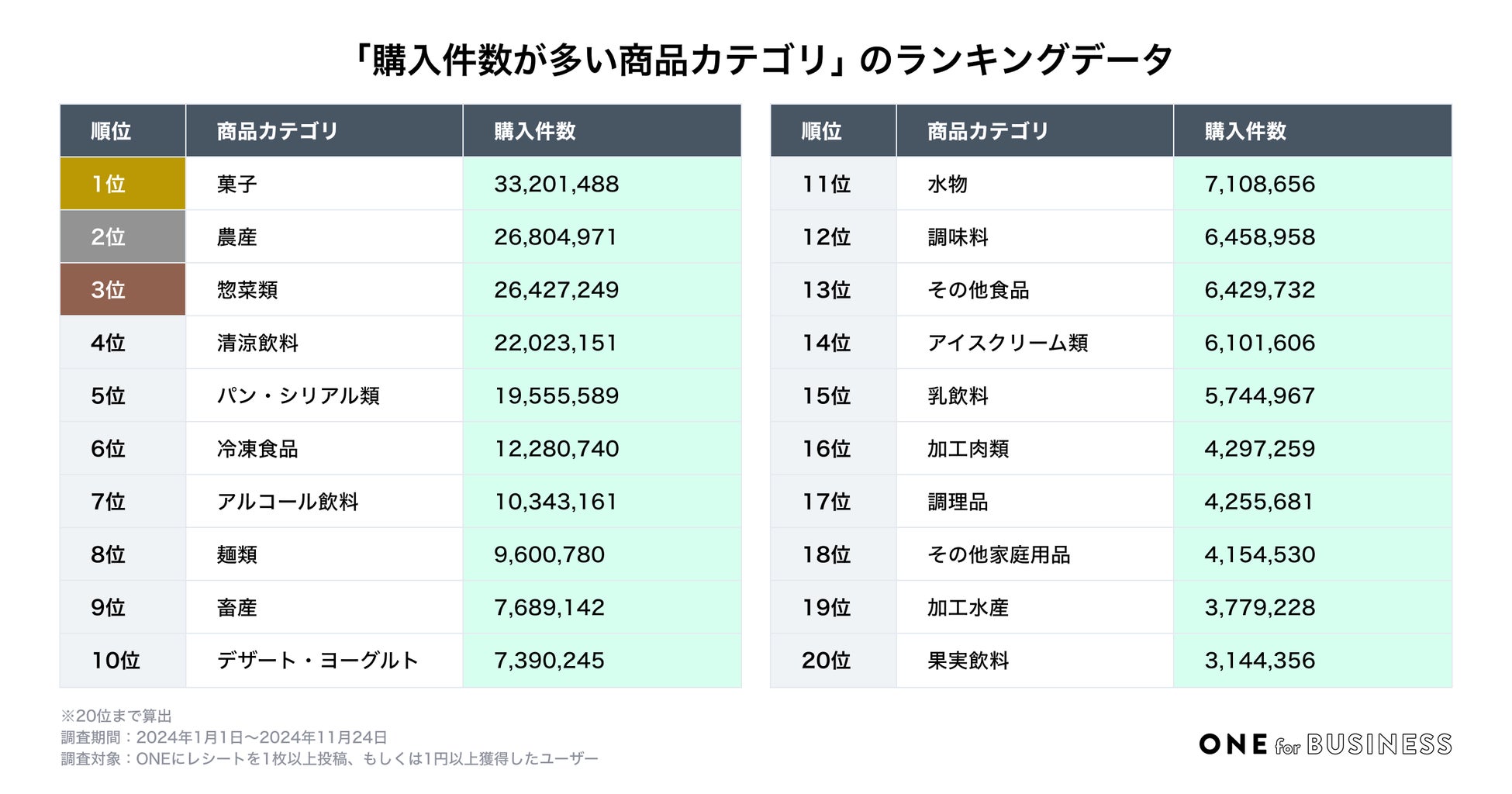調査方法:ユーザーがONEに投稿したレシート画像と、ONEモールでの購買履歴を元に調査