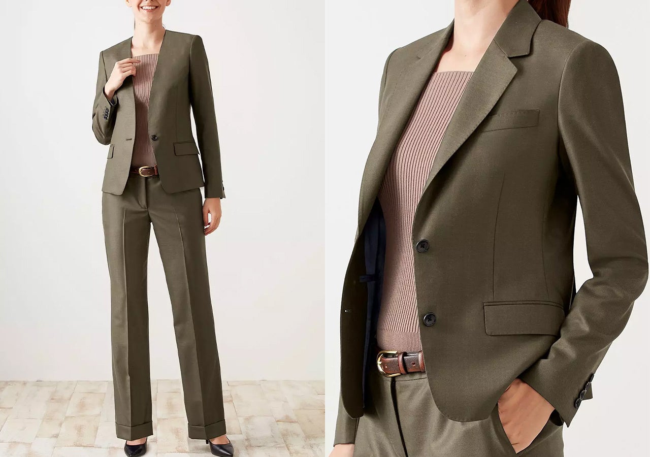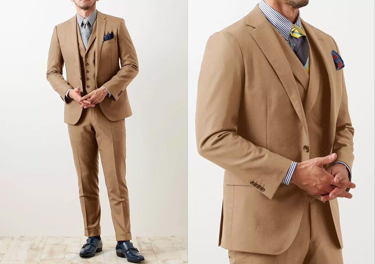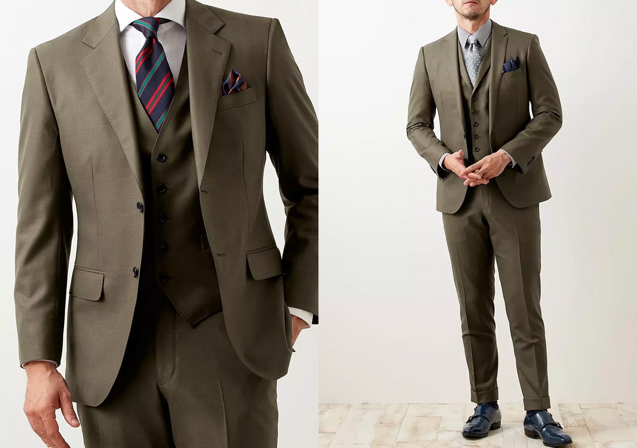 お洒落で個性的なグリーンの生地。最近ではビジネスシーンにも着用する方が増えていて、ひと味違う大人の色気を演出できます。