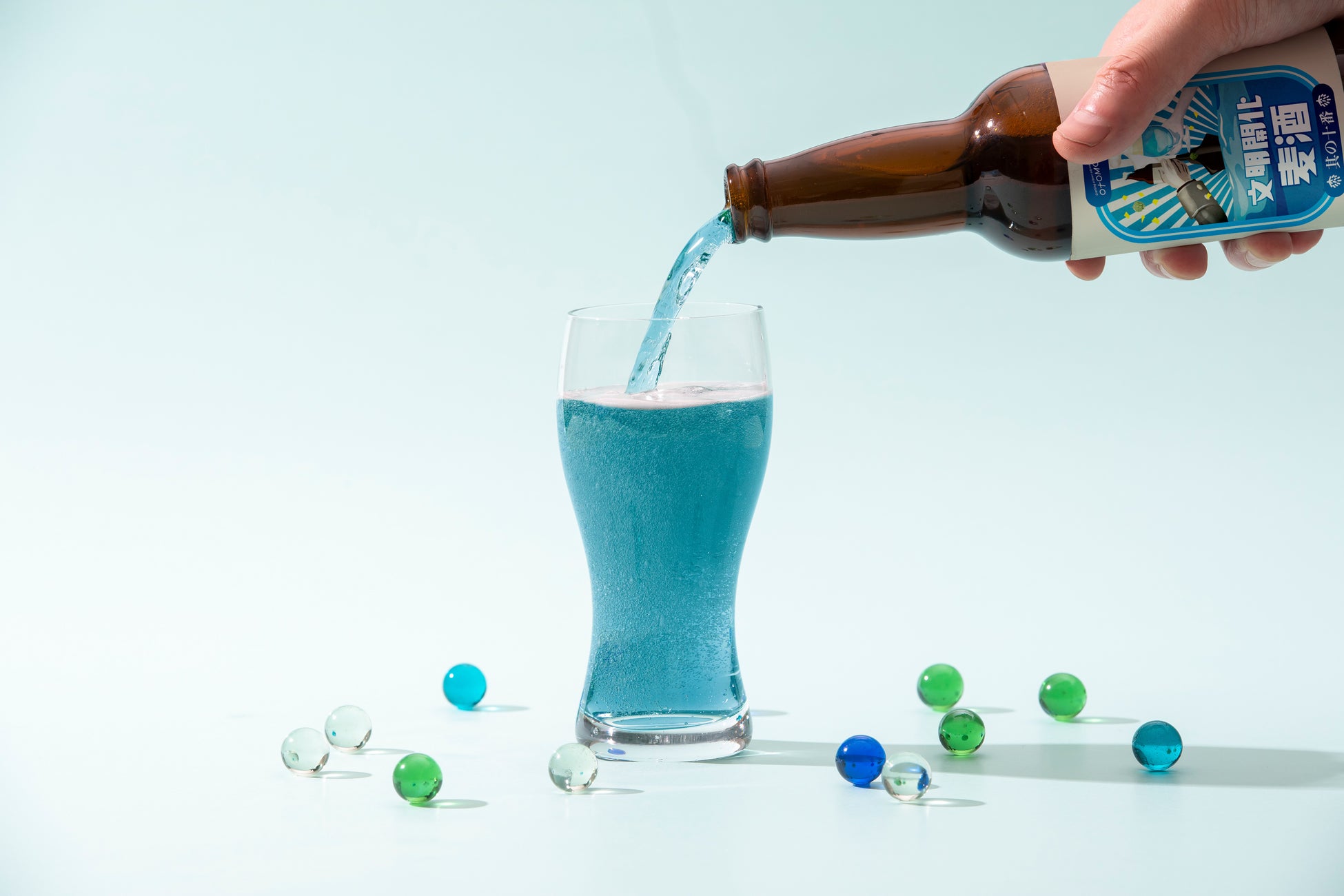 【ラムネをイメージして作られた青いビール「文明開化麦酒」】