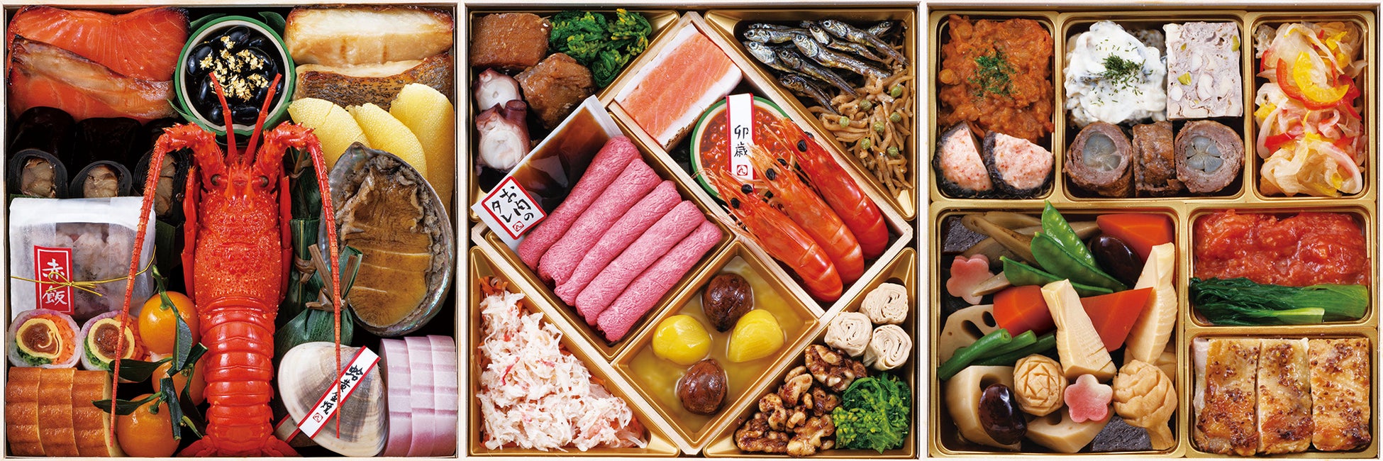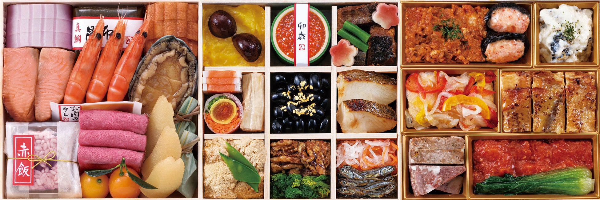 和洋中、ハレの日を言祝ぐ嬉しい縁起物を沢山詰め込みました。今年は人気の「幸」「福」2種類に加え、さらに団欒を贅沢に彩る“近大マグロ”と“国産とらふぐ”を詰め合わせした「祝膳だい九セット」も販売いたします。