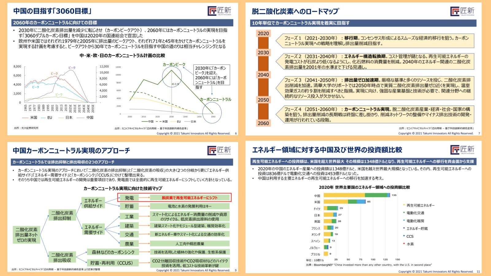 「中国カーボンニュートラル概況レポート」では、以下の内容をレポートとしてまとめています。