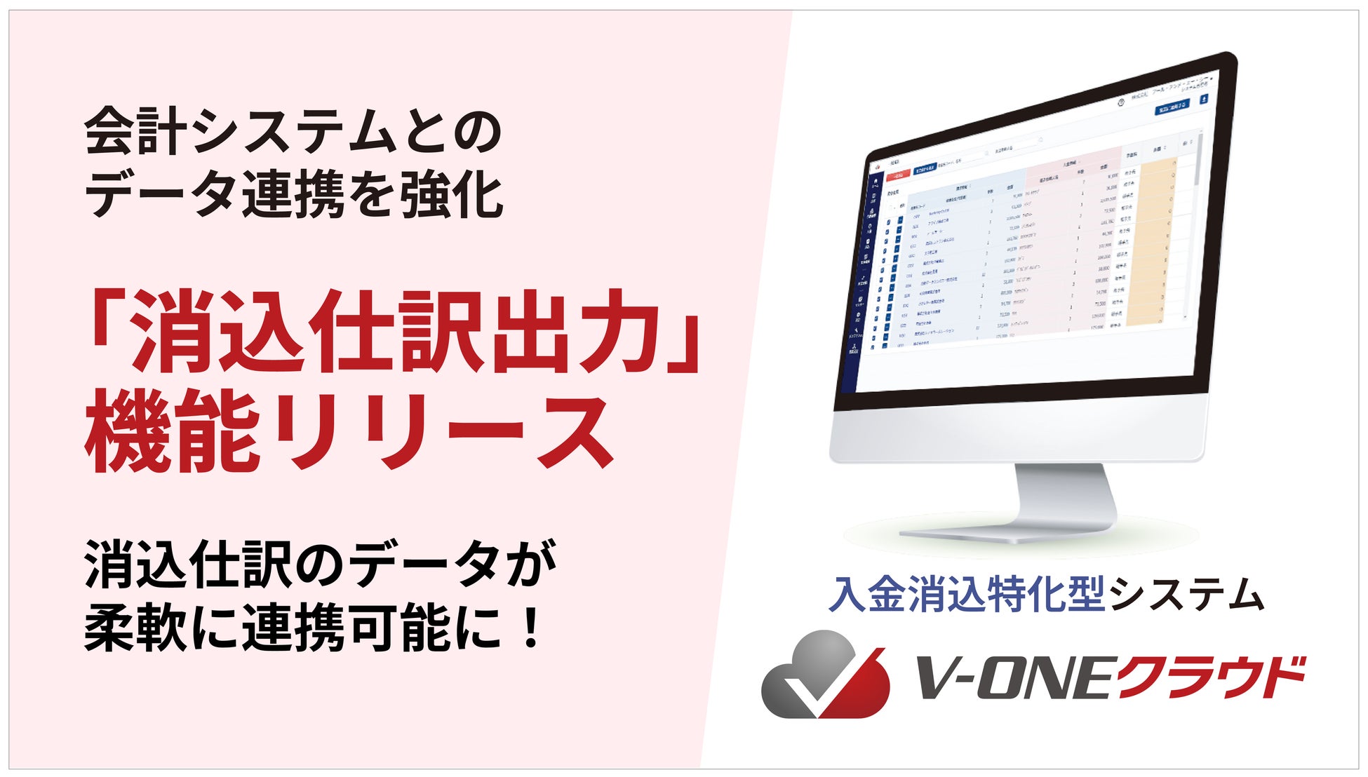 入金消込特化型システム「V-ONEクラウド」が会計システムへの「消込仕訳出力」機能をリリース