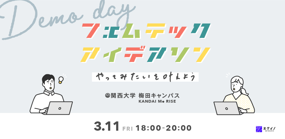 【#Femtech Demo Day】アイデアを事業化するまでのプロセスを大公開!「あなたの悩みが事業になるフェムテックアイデアソン」 produced by ネクイノ