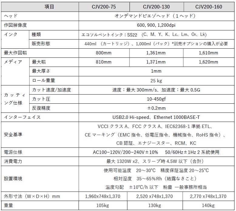 「CJV200シリーズ」は、お客様の用途に合わせ3種類のサイズをラインナップの上、2024年10月の販売開始を予定しており、主にサイングラフィックスの用途で年間約1,500台の販売(全世界)を見込んでおります。