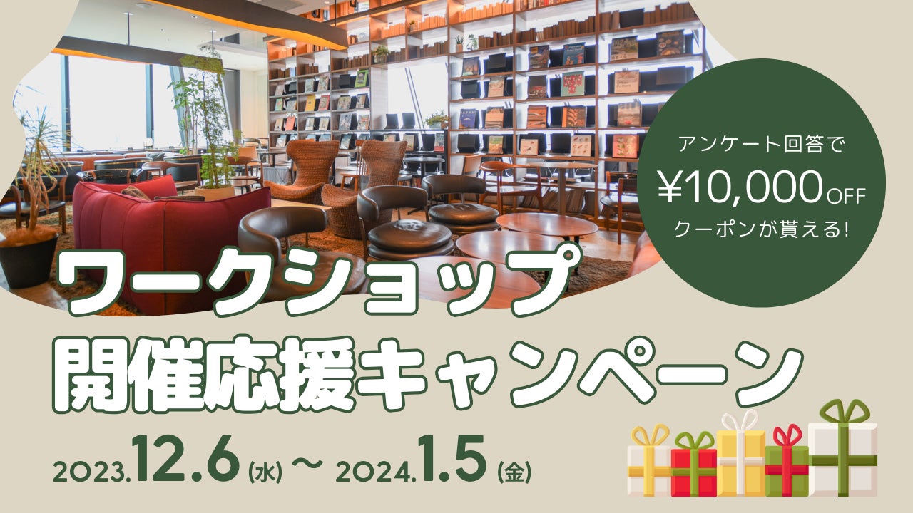 ワークショップに関するアンケートに回答いただくだけで、もれなく全員に「SHARE LOUNGE」渋谷店・田町店で使えるインスタベース10,000円OFFクーポン(最低利用金額:50,000円)をプレゼントいたします。気になっていたけれど、まだ一度も「SHARE LOUNGE」を使ったことがなかった方にも、絶好のチャンスです。さらに、回答いただいた方の中から抽選で1名様にワークショップ開催無料券を差し上げます。