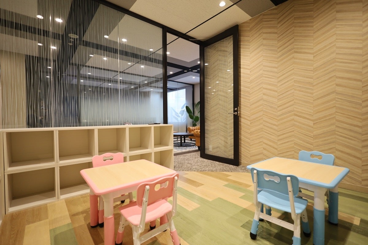 ご相談スペースから目の届くところにキッズルームを併設していますので、小さなお子様連れでも安心してご来店いただけます。都心のオフィスビル内のギャラリーではございますが、当社の施設にご関心を寄せていただく方には、ご家族の未来を考える中で「別荘を持つ」という選択肢をお考えの共働きのお若いご夫婦や、親子3世代での利用をご検討の方も多くいらっしゃるため、お忙しい日々の中でもご利用いただきやすいようキッズルームを設けました。