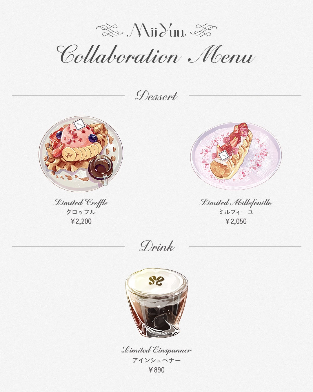 ②コラボメニューとポストカードを一緒に撮影し、『#MiiYuu』「#MiiYuuコラボカフェ』のハッシュタグ&MiiYuuアカウントをタグ付けしてInstagramへ投稿