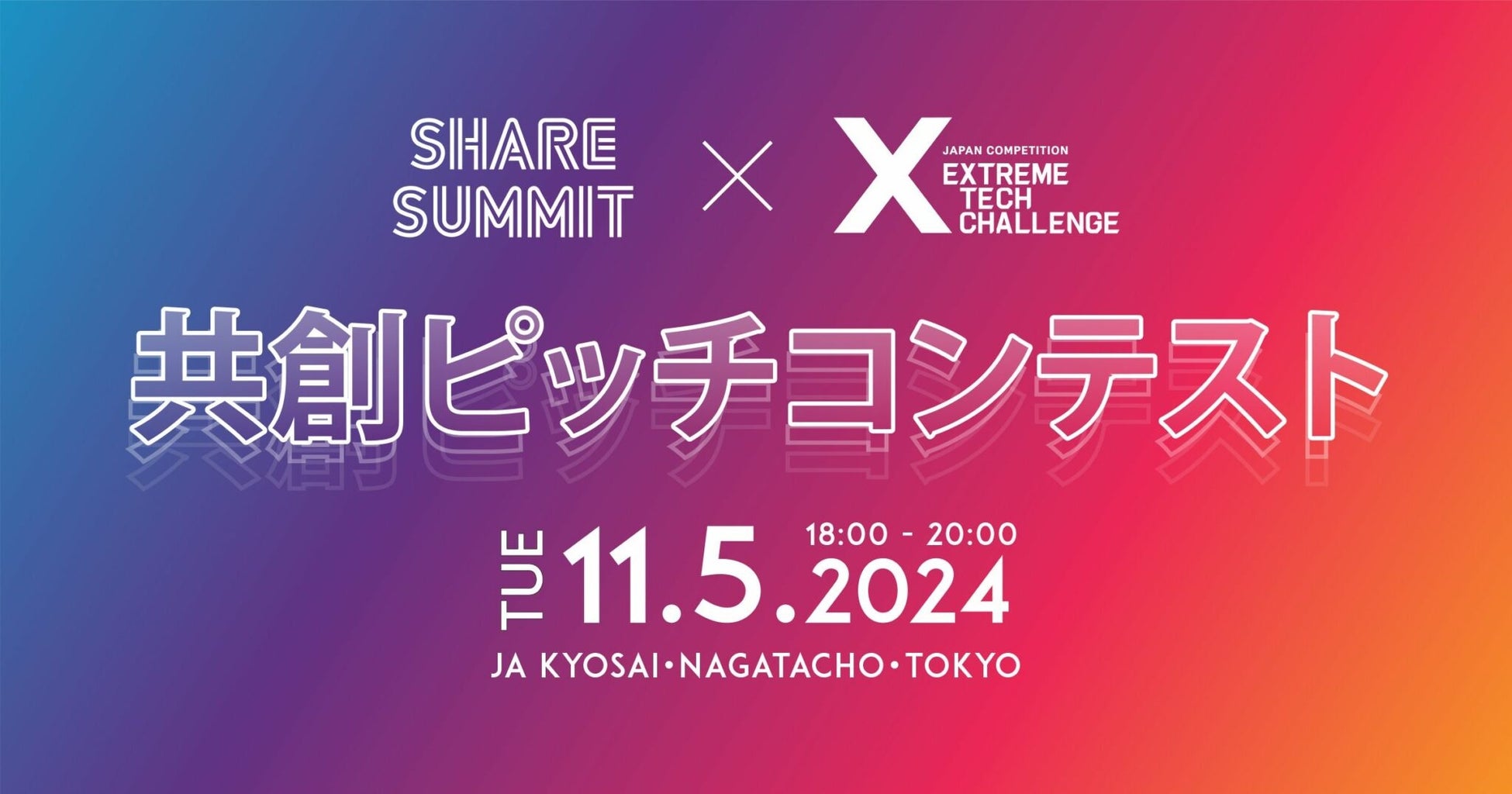 「公民連携で創る持続可能な地域&社会」を実現するため、XTC JAPAN運営委員会(幹事:春日伸弥)の協力のもと、公共サービスや公共インフラと連携して事業拡大に取り組む起業家のためのスタートアップ・コンテスト『SHARE SUMMIT 共創ピッチコンテスト2024』(以下、「共創ピッチコンテスト」 )を「SHARE SUMMIT 2024」内にてJ開催します。現在、10月15日(火)までのピッチエントリー受付中です。