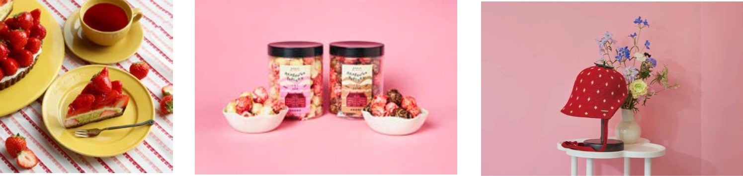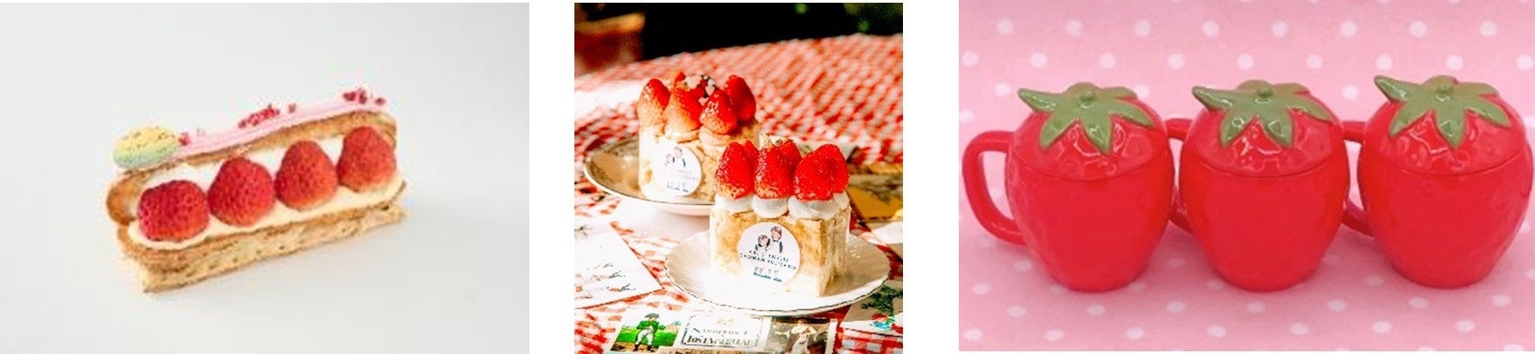 いちごを贅沢に使った、見た目も可愛いスイーツやドリンク、グッズが目白押し!(各商品は、数に限りがございます)